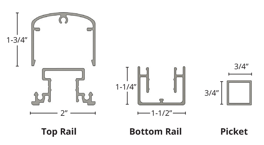 | Pickets: | 3/4” x 3/4” x .050 Wall |
