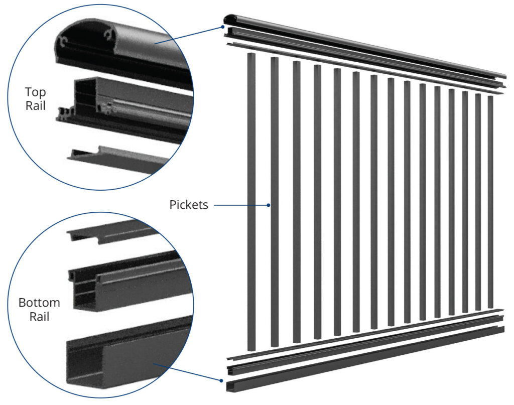 | Pickets: | 3/4” x 3/4” x .050 Wall 3/4” Round .065 Wall |