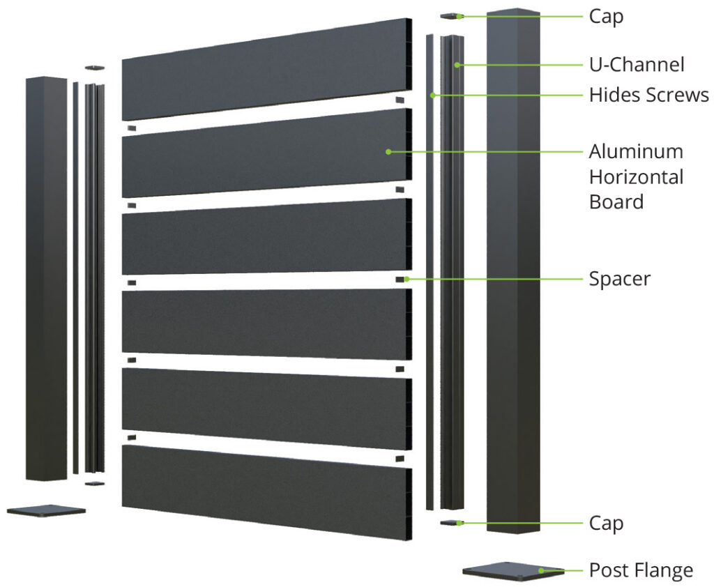 When privacy matters, choose Elite PRIVACYGard Systems, part of the Elite COREGard Architectural Products brand of Elite Fence Products. Our H.A.S.P. (Horizontal Aluminum Semi Privacy) fences are designed to create separation without feeling closed in. They are the perfect balance of privacy, airflow, and a clean, modern style. H.A.S.P. fences are built from premium aluminum with a minimum strength of 35,000 psi and powder coated to meet the highest AAMA 2604 standards. Our aluminum PRIVACYGard fences are wind-load engineered and tested using plated and in-ground posts, ensuring high-performance, professional-grade construction.